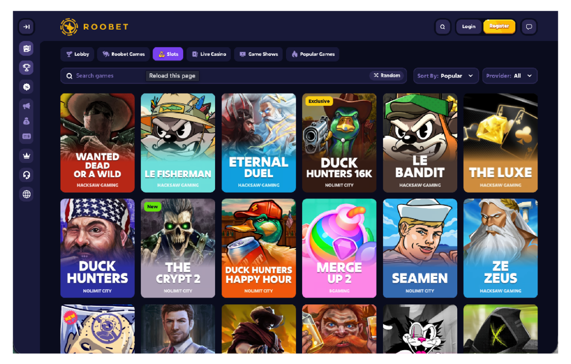 Roobet slot games screenshot to showcase variety